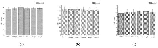 Pre-test results of participants’ anxiety, depression and sleep quality. (a) Pre-test results of participants’ anxiety; (b) pre-test results of participants’ depression; (c) pre-test results of participants’ sleep quality.