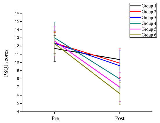 The trend of sleep quality of the six groups of subjects.