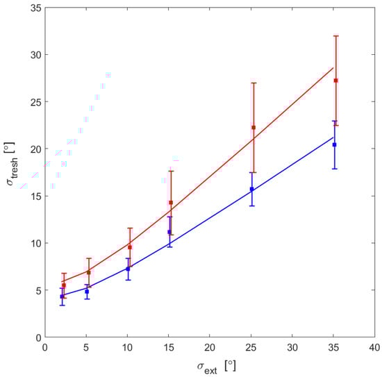 In Equation (1), σthresh is the motion direction threshold, σint is the internal noise, σext is the external noise, and N corresponds to the number of samples integrated into global motion direction estimation.