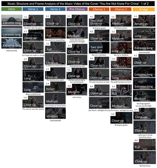 Musical structure and frame analysis of the music video of the cover ‘You Are Not Alone For China’ by young singers and musicians during the COVID-19 outbreak in China, in the extended parts.