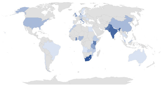 The geographical analysis also shows a prevalence of Commonwealth countries. The interest shown may be due to human capital, i.e., the chronic lack of human resources in the health sector in some lesser-developed countries, particularly in Western Africa [13]. In addition, historically, many health professionals of the U.K. emigrated to English-speaking countries, such as South Africa, Pakistan, India, and Nigeria [35]. In Sub-Saharan African countries, and particularly in rural and remote areas, there are few human resources, driven by the often poor working conditions in those contexts [36]. On the other hand, Danish workers were considered the most satisfied in their workplace and can serve as an example for the health system/context and conditions in which they operate [37]. This being said, the distribution of countries involved in the research prevents us from generalizing and providing exact reasons.