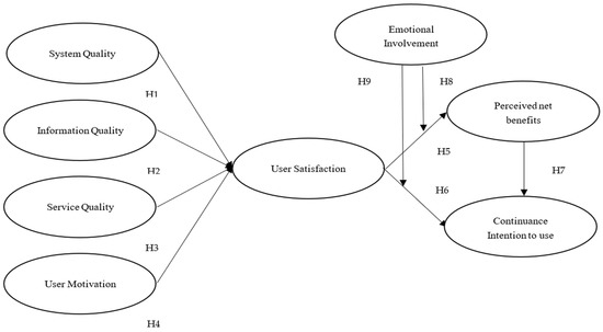 This above section addresses whether user satisfaction is related to perceived net benefits and continuance intention to use, and whether user satisfaction is associated with the antecedent variables (i.e., system quality, information quality, service quality, and user motivation) and moderating variables (i.e., emotional involvement). A conceptual model was developed and is presented in Figure 3.