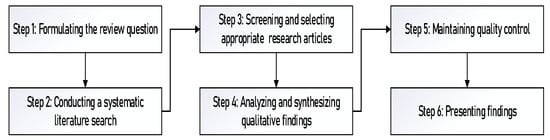 Following Francis-Baldesari, we organize our research into the following six phases [55]. The phases related to qualitative systematic review is presented in Figure 1.