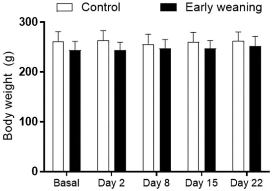 - Early Weaning Group—weaned on the 15th post-natal day (n = 8).