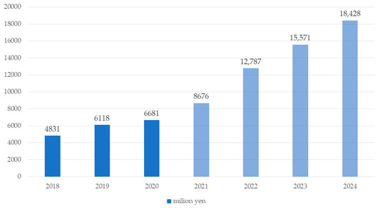 In recent years, there has been an exponential increase in the popularity of online video games, owing to technological advancements in network capabilities. Online video games range from strategic maze-based games and falling blocks games where players battle, shooters games, and sports games where a player may team up to play with a small group of players, and to large scale multiplayer online battle, and so on [1,2]. The term Esports, is short for electronic sports, and Esports are considered a variant of video gaming. While there is no consensus on the definition, it is generally agreed that Esports are competitive gaming activities [3]. Over millions of players play games and participate in electronic competitions daily, leading to a rapid proliferation in the number of players globally. Esports is growing around the world, where more and more individuals are engaging as players or spectators [4]. The most attractive attention point of Esports in Japan is the element of teamwork. Esports in Japan had not flourished despite its large video game market; there were various Esports tournaments that have started in recent years. In addition, the official Esports organization, which is called the Japan Esports Union (JeSU) was established in 2017. Junior and high schools are adopting Esports at an increasing pace, the National Athletic Meet cultural program “Prefectural Esports Tournament” being held per year since 2019 in Japan [5]. In addition, various Esports tournaments are being held for high school students, such as ALL JAPAN High School Esports Championship [6], and the National High School Esports Tournament [7]. This rapid global growth of Esports has led not only to an increased number of players and competitors, but also creating new labor, political economy, employment, and marketing [8]. According to ewzoo’s Global Esports & Live Streaming Market Report, global Esports revenues will grow to $1084 million in 2021, a year-on-year growth of +14.5%, up from $947.1 million in 2020 [9]. As shown in Figure 1, the size of the domestic E-sports market in 2020 reached 6.68 billion yen (about $52.3 million), 109% of the previous year’s level in Japan (after 2021 are forecasts) [10].
