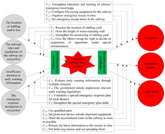 FTA [19,20] was conducted on the flood disaster caused by the Zhengzhou extremely heavy rainstorm, and the causes of the flood disaster were discovered, as shown in Figure 5.
