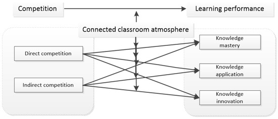 Due to the popularity of the game-based competition concept in various fields, the concepts of direct competition and indirect competition presented by the competition mode, ranking competition mode and hierarchical competition mode have been widely introduced into learning situations in an attempt to improve learners’ learning motivation and learning performance [17,18,19]. However, Harms and Fox believe that game elements are widely used in teaching as a way to improve students’ participation in class. However, in a 16-week experiment of studying the same course, it was found that the students who adopted the game-based courses of rankings and badges showed lower motivation and lower final exam scores than the students who did not play games [20]. Christy and Fox found in a learning experiment of a virtual classroom that the competition of the ranking mode aroused the social comparison of female learners, affected their academic identity and academic performance and significantly reduced their mathematics test scores [21]. Burguillo conducted experimental research on students’ learning activities in a ten-year research cycle, based on friendship competition games, and implemented the framework of competition-based learning (CnBL) to stimulate students’ learning motivation and improve students’ academic performance. The results showed that the competition mode of friendly matches was helpful in improving students’ learning motivation and performance [22]. Cagiltay et al. took 142 students’ learning performance as the research object, introduced competitive game design elements and examined the effect of competitive elements on learning performance. The results showed that creating a competitive environment in serious games significantly improved learners’ learning motivation and academic performance [23]. Chen Guoqing and others took online language learning as the situation, from the perspective of “demand-availability-functional characteristics”, to stimulate the psychological occupation and self-satisfaction of individual learning through platform functional characteristics and availability [11]. The frequency of individual learning behaviors participating in direct competition and indirect competition in online language learning was significantly improved, and the weekly platform used stickiness 5.31 times more; the weekly learning performance (memorizing words) of learners participating in the direct competition group increased by 41%, while that of learners participating in the indirect competition group increased by 67.8%.