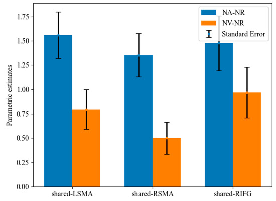 Parametric estimates for NA-NR and NV-NR in shared regions. The mean parameters of NA-NR were significantly higher than those of NV-NR in the shared-LSMA and shared-RSMA.