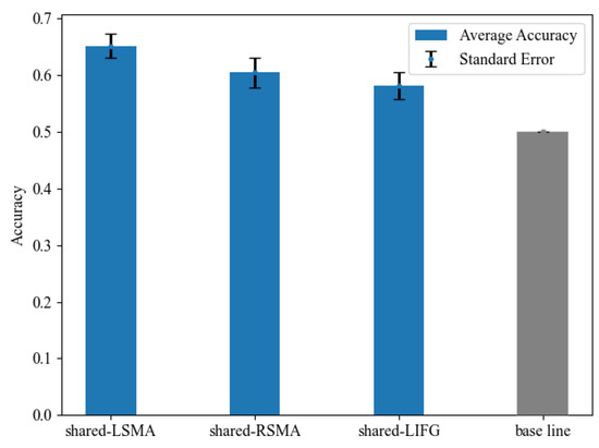 The classification accuracy and standard error in each shared region and the chance level of 50%. The accuracy in all ROIs was significantly above the chance level.