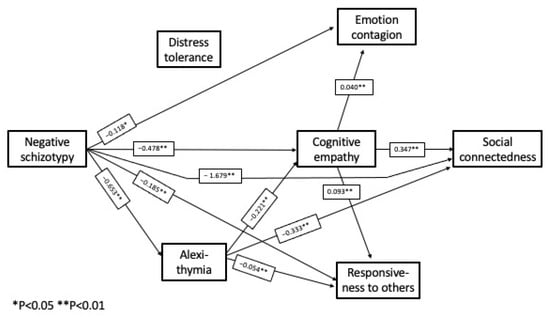 Computed pathways between negative schizotypy and social connectedness (unstandardized path coefficients).