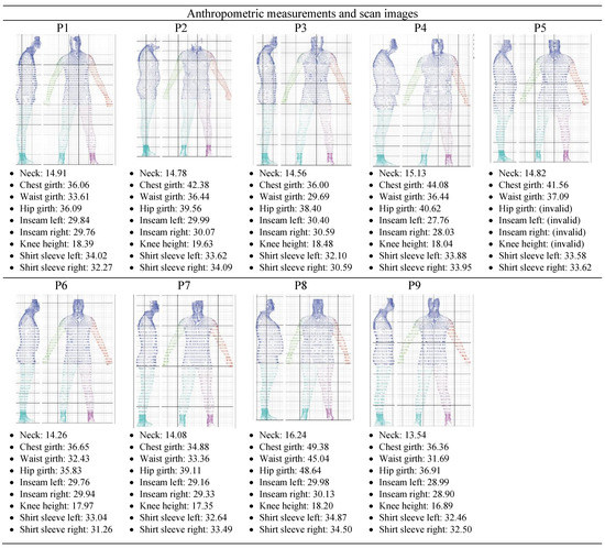 Scan-derived anthropometric measurements and body images of 9 participants.