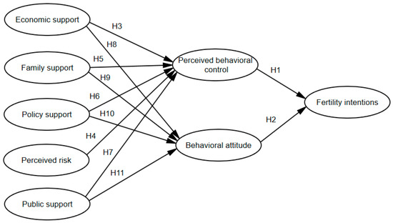 Therefore, research hypotheses H3-H11 are proposed, and a theoretical model of the fertility intentions of women of childbearing age is constructed, as shown in Figure 4.