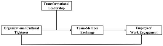 In recent years, organizational cultural tightness, based on the cultural tightness–looseness theory, has emerged as a new perspective for examining various organizational psycho-behavioral phenomena. In particular, the cultural differences between tight and loose cultures have been widely discussed during the COVID-19 pandemic [11]. Based on the perceived strength of social norms and tolerance for deviant behavior among organization members, we conducted an empirical investigation during the pandemic in China to examine the impact of organizational cultural tightness on work engagement in the particular periods. In addition, employees’ work engagement, as a category of research on the relationship between leadership and followership, is more often explored in current research in terms of “leader-centered” leadership style [12,13] and leader-member interaction [14] on employee engagement. While this may demonstrate the direct impact of leadership behaviors on employment, it also reflects the lack of evidence of the effects of organizational culture and leadership behaviors on employee engagement at the team level. To address these issues, we will explore the impact of organizational cultural tightness and team-member exchange on employees’ work engagement from the perspective of organizational culture and focus on the interaction of transformational leadership and organizational cultural tightness to produce the contingency changes.