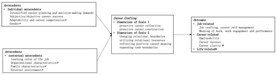 Diagram of the theoretical framework of career crafting (summary of this study, * represents empirical tests in the future).