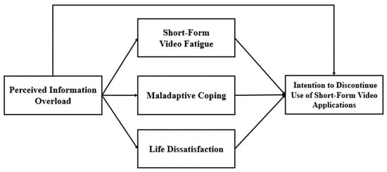 As mentioned above, previous literature has explored life dissatisfaction as one of the key psychological factors that indirectly affects this causal relationship. Therefore, this study argues that life dissatisfaction could mediate the effect of the relationship between perceived information overload and the intention to discontinue the use of short-form video applications. Hence, the following hypothesis was thus proposed (Figure 1):