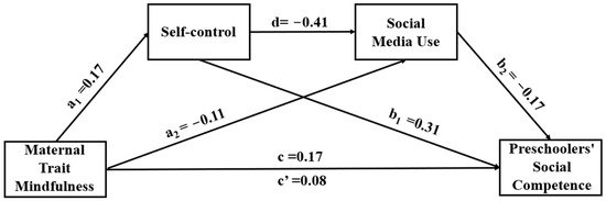 The present study also found that maternal self-control and problematic social media use independently mediated the relationship between maternal mindfulness and preschoolers’ social competence, and the results validated Hypotheses 2 and 3.
