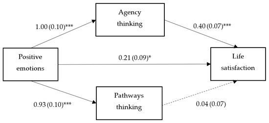 4.1. Investigating the Associations: Positive Emotions, Hope, and Life Satisfaction