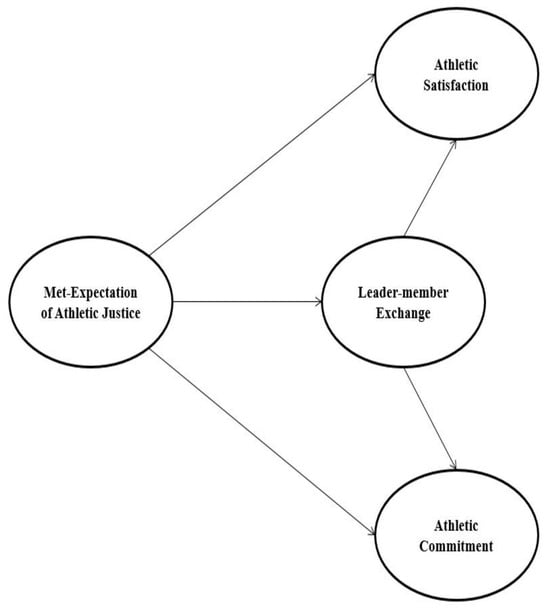 Athlete satisfaction is defined as an athlete’s feeling of pleasure or happiness regarding their athletic experience [35]. It is considered to be an important factor that can impact athletes’ well-being and is linked to individual and team performance [35,36]. In fact, there is a substantial body of the literature that supports the positive role of athlete satisfaction on various outcomes, such as commitment and performance. Given the positive role of athlete satisfaction, personal factors (e.g., personality traits, self-esteem, and motivation) and environmental factors (e.g., coaching style, team cohesion, and organizational support) have been studied to understand how to develop a high level of athlete satisfaction. In the current study, we examined potential environmental factors, including met-expectations of organizational justice and leader–member exchange, that foster athlete satisfaction and ultimately lead to improved performance. Team commitment can be defined as the level of identification and attachment an athlete feels toward their team [37]. Numerous studies have found a positive relationship between employees’ perceptions of fairness and level of commitment to their organization [20], which suggests that when athletes feel they are being treated fairly within their team, they are more likely to feel committed to the team.