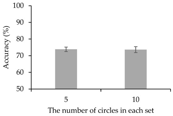 All the details of this experiment were identical to Experiment 1, except that the number of sets was two in all trials and the number of circles in a set was varied in different conditions. The number of circles in a set was five in half of the trials and ten in the other half.