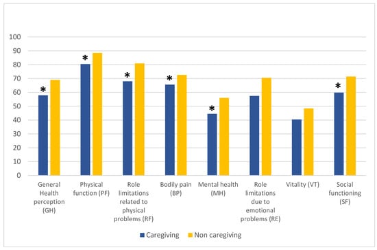 3.1.2. Comparison between Female Caregivers and Non-Caregivers