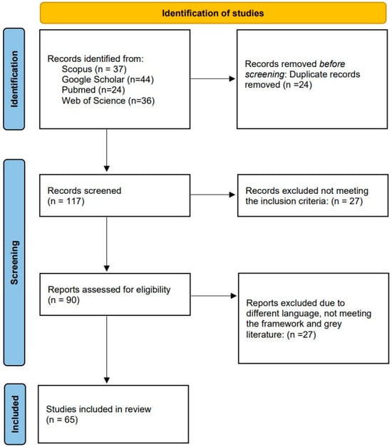 - Tricco, A.C.; Lillie, E.; Zarin, W.; O’Brien, K.K.; Colquhoun, H.; Levac, D.; Moher, D.; Peters, M.D.; Horsley, T.; Weeks, L.; et al. PRISMA extension for scoping reviews (PRISMA-ScR): Checklist and explanation. Ann. Intern. Med. 2018, 169, 467–473. [Google Scholar] [CrossRef]