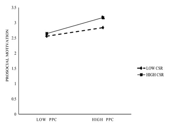 Moderation of CSR in positive psychological capital on prosocial motivation.