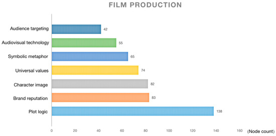 The film production dimension is shown in Figure 2. As a comprehensive work of audio-visual art, the film tells the story through the screen, so the audience’s first concern is still how well the story is told. Film production comprises internal character image, symbolic metaphor, plot logic, universal value and external audience targeting, audiovisual technology, and brand reputation, which is the most discussed part of the audience.