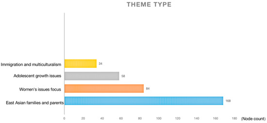The theme-type dimension is shown in Figure 3. In cross-cultural communication, the incommensurability between different regions, countries and cultures leads to the difficulty of the culture with strong characteristics being popular worldwide. Content elements will aggravate the negative impact caused by cultural heterogeneity, while aesthetic elements can weaken such negative impact [58]. Therefore, the usual approach is to reduce the story’s cultural specificity while adding culturally specific aesthetic elements.