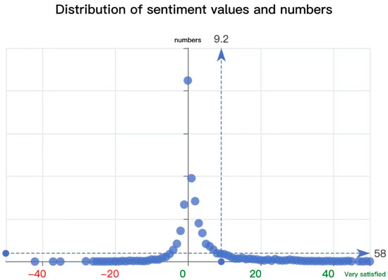 Based on the above discussion, we will try to answer the two questions raised at the beginning of the study. For RQ1, what is the behavior of the Chinese audience’s receptive attitude towards Turning Red? What are the reasons behind it? We discovered that cognitive-to-affective feedback is predominantly positive, and that the acceptance attitude is naturally oriented. We performed sentiment analysis on all the texts with the help of fenci.weiciyun.com, and a total of 4770 valid entries were filtered out. These sentiment words were assigned a value between −3 and 3, with values less than zero being negative and greater than zero being positive. The final relationship between the sentiment value and the number distribution was obtained, as shown in Figure 6. Among them, a positive sentiment was the most predominant, and the most concentrated sentiment value was 9.2 points in the positive direction. Thus, it is clear that the positive sentiment is much greater than the negative sentiment in the audiences’ evaluation of Turning Red. Correspondingly, it has indeed created a more positive attitude toward in China.