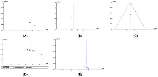 Funnel plot. (A) Sport-specific power; (B) Sport-specific speed; (C) Sport-specific agility; (D) Endurance; (E) Balance.
