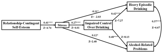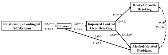 Kalina, E.; Boyd-Frenkel, K.; Patock-Peckham, J.A.; Schneidewent, L.; Broussard, M.L.; Leeman, R.F. Does Relationship-Contingent Self-Esteem Play a Role in the Stress to Impaired Control Pathway to Alcohol-Related Problems in a College Student Sample? Behav. Sci. 2023, 13, 185. https://doi.org/10.3390/bs13020185