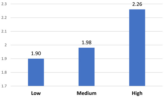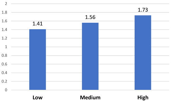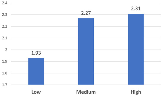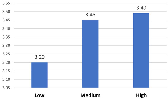 As seen in Figure 3, regarding feelings of social exclusion (Figure 3), significant differences were observed in the three groups, corresponding to the low, medium, and high levels. In contrast with the results for FoMO, in the results for feelings of social exclusion, the differences between the three evaluated levels of perceived phubbing are relevant for this analysis (and not only the comparison between high–medium levels with respect to low levels).