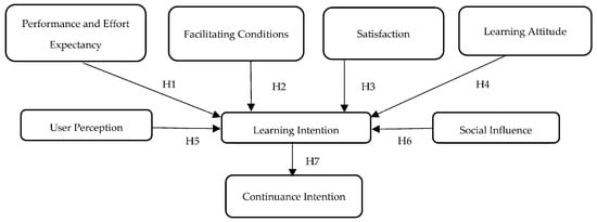 The hypotheses of this study are adopted based on UTAUT, TAM, and Usability model. There are six primary constructs used in this model with the following details, which can be seen in Table 1 [,,]: