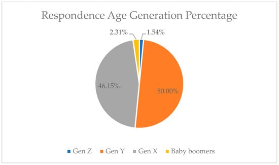 Several factors of the usage of Information and Communication Technology (ICT) greatly influence its utilization, such as the age factor []. There are four age-generational groups that are currently used to generalize age groups, including the baby boomer generation, generation X, generation Y, and generation Z. The four generations have different age ranges, baby boomers are the oldest age, and generation Z is the youngest []. Based on the results of this research survey, the dominant user that is a highly considerable age generation is generation Y, and 50% of womenpreneurs have come from this generation. Therefore, in defining the acceptance of the technology, Gen Y have the highest acceptance rate, while baby boomers have the lowest rate. This can be seen in Table 2 and Figure 5. The developer must prioritize the needs of Gen Y, since the majority of the targeted users of digital financial literacy applications are from Gen Y.