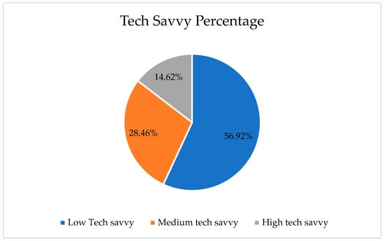 The percentage of technology savvy level.
