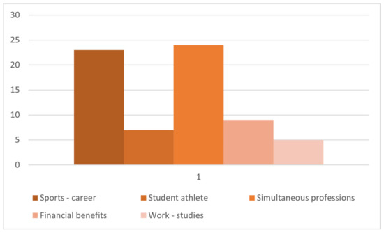 Analyzing the answers obtained, we notice the fact that the largest number (24) was of people who associate dual career with a way to have simultaneous professions. At the same time, 23 times dual career is perceived as a combination of sports activity with another job, and only 7 references go to athletes who are also involved in the educational field (Figure 1).