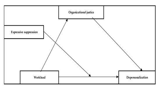 Organizational justice mediates the relationship between workload and depersonalization, while expressive suppression moderates the relationship between them.