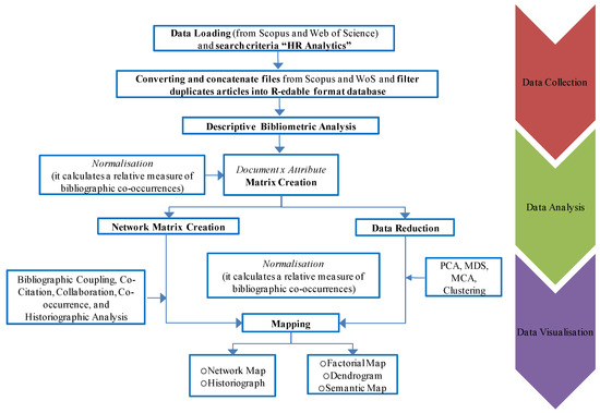 Thus, for this study, bibliometric analysis [24] was carried out using the general Science Mapping Workflow methodology described by [25], as shown in Figure 1. The application and organisation of the bibliometric analysis were carried out by means of the standard workflow consisting of five steps [26].