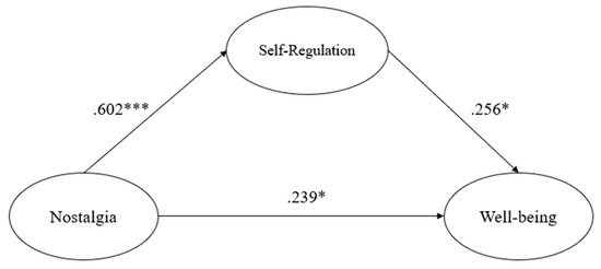 Standardized coefficients of the structural equation model (Note. * p < 0.05; *** p < 0.001).