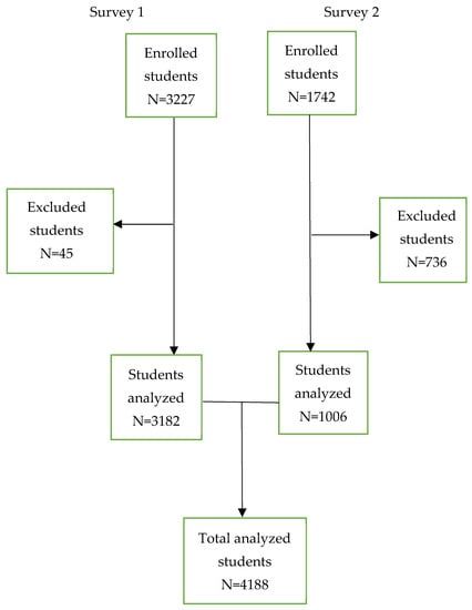 A flow diagram of enrolled and analyzed participants in the two surveys.