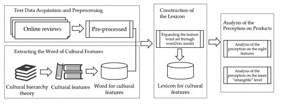 The framework for analyzing consumers’ perceptions based on online reviews and cultural hierarchy theory.