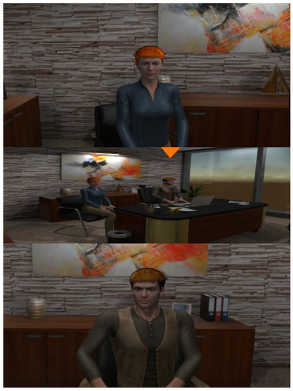 In this scenario, the trainee has to attend a job interview at the offices of an IT company (see Figure 7). At the easy level, the trainee is required to convince the team leader to hire them as an IT assistant. At the moderate level, the trainee needs to convince both the team leader and the HR manager to hire them as an IT assistant. Finally, at the difficult level, there is one more person in the waiting room, with whom the trainee has to initiate a discussion and extract information that may assist them with getting the job. Then, the trainee has to use this information to convince both the team leader and the HR manager that they are the best candidate for this position.