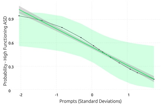 Descriptive statistical analysis was performed to provide an overview of the sample. Pearson’s correlational analyses were performed to investigate the relationships between cognitive functions, performance in VR social scenarios, and acceptability, usability, and user experience ratings. Kendal’s Tau correlational analyses were conducted to test the associations with the functionality level of individuals with ASD (dichotomous variable, i.e., 1—high-functioning; 2—moderate functioning). Generalised regression analyses were performed to test the ability of the performance variables to predict the functionality level of individuals with ASD. Linear regression analyses were used to examine the predictors of acceptability, usability, user experience, and the number of prompts. The R language [98] in R Studio [99] was used to perform the analyses. The best-Normalize R package [100] was used to transform and centralise the data since the continuous variables violated the normality assumption. The distribution of the continuous data was then normal. For performing the respective analyses, the psych (correlational analyses) [101], ggplot2 (plots) [102], and stats (regression analyses) [98] R packages were used.