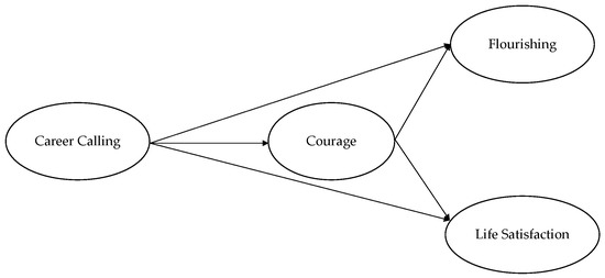 Based on the literature review above, career calling can be regarded as a fundamental psychological construct related to life satisfaction. Furthermore, courage has been found to play a role in coping with career development tasks in university students by promoting well-being. Therefore, this study aims to explore the role of courage in the relationship between career calling and two measures of well-being, life satisfaction and flourishing. We assume that courage motivates people to protect what they consider to be valuable. Therefore, if individuals experience their careers as a vocation, this encourages them to protect their careers, which may impact their well-being. Specifically, we expected the following: