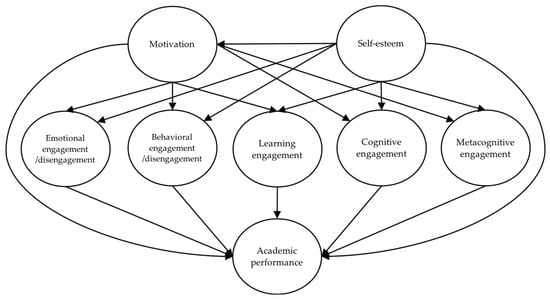 One of the essential components to understanding the involvement level of a student in educational activities is motivation. Many researchers have analyzed this connection and confirmed the impact of motivation on academic engagement [,,]. Self-efficacy is one of the factors that comprises the construct of motivation [].