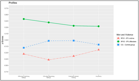 Considering the relevance that both impulsivity and alexithymia appear to have in the victimization phenomenon, this study aims to use a profile analysis to evaluate and compare the contribution of alexithymia and impulsivity to IPV perpetration and victimization in men. Based on previous research, we predict that IPVP will exhibit significantly higher levels of alexithymia and impulsivity compared to the general population and the IPVV group. In addition, we hypothesize that IPVV will demonstrate levels of alexithymia and impulsivity similar to those of the general population.