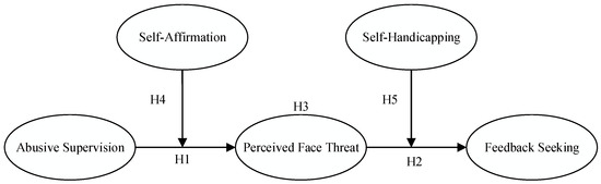 In addition, failure may imply self-worth for individuals. For example, low ability is often considered the cause of failure, and low ability is equivalent to low self-worth. Therefore, when self-worth is threatened, subordinates may try to avoid failure or even give up the opportunity to pursue success in order to protect their sense of self-worth [24]. Thus, when faced with achievement situations, individuals may be motivated to protect their self-worth and take the self-handicapping strategy. As self-handicapping is a kind of individual trait, people with high self-handicapping prefer self-protection [25,26]. Therefore, when individuals with high self-handicapping are faced with face threats due to abusive supervision by their superiors, the self-handicapping strategy will be activated for self-worth protection. Therefore, this study introduced the trait of self-handicapping into the research of abusive supervision and explored the moderating effect of self-handicapping on the influence of perceived face threat on feedback seeking.