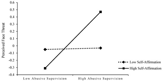 Self-affirmation positively moderates the relationship between abusive supervision and perceived face threat.