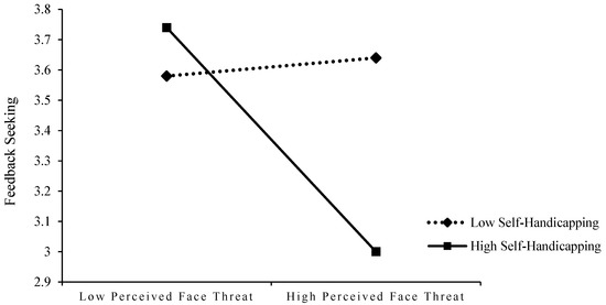 Self-handicapping moderates the relationship between subordinates’ perceived face threat and feedback seeking. That is, employees with high self-handicapping strengthen the negative relationship, while employees with low self-handicapping weaken the negative relationship.