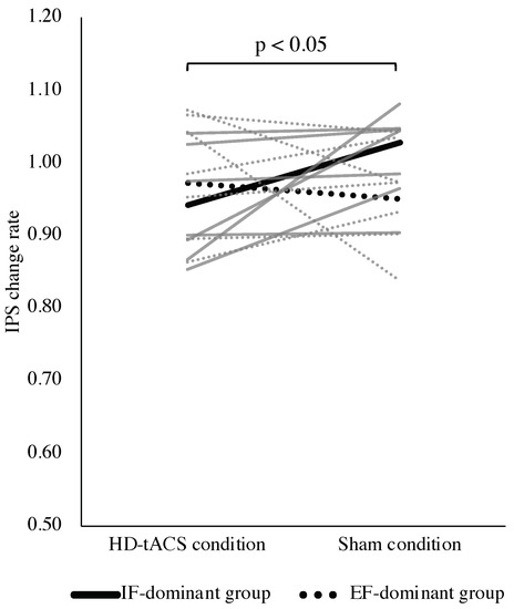 4.2. Effect of θ HD-tACS on Standing Postural Control under EF Conditions in IF- and EF-Dominant Groups